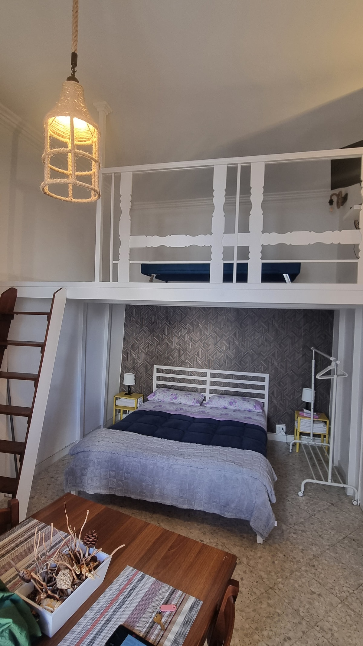 Studio d'environ 30 mètres carrés, porte blindée, grandes armoires, coffre-fort, cuisine entièrement équipée avec lave linge, lave vaisselle, four, table à induction, machine à café avec dosettes, presse-agrumes et grille-pain. La salle de bains dispose d'une douche très spacieuse avec pommeau de pluie, et vous trouverez également un ensemble de toilette complet avec du savon, du shampoing et un sèche-cheveux. Le couchage est équipé d'un lit confortable à la française. La climatisation canalisée et réglable et avec Wi-Fi gratuit.