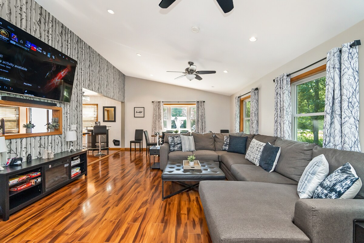 Évadez-vous dans les montagnes de Pocono et découvrez Bear Rock sur Birch ! Cette retraite élégante et adaptée aux chiens bénéficie d'un emplacement privilégié, à quelques minutes seulement des pistes et du lac. Backing State Game Lands C'est un espace de 4 chambres, 2,5 salles de bain et un plan d'étage ouvert moderne. Cet espace immaculé offre un mobilier de luxe et une ambiance de montagne captivante. Sirotez votre café du matin sur la terrasse enveloppante et plongez dans la nature. Votre opportunité pour un mélange parfait de confort et de beauté naturelle