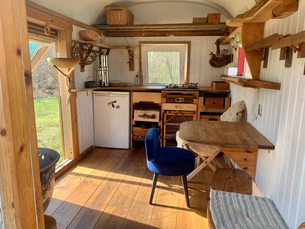 Pendant votre séjour chez nous, vous vivrez dans une roulotte spacieuse et restaurée avec amour, avec terrasse et jardin. Il est également aménagé pour de longs séjours. En hiver, le chauffage se fait au bois et aux briquettes et il fait vite chaud et douillet. L'eau froide courante n'est disponible dans la voiture que pendant le temps sans gel ! Les chevaux peuvent être amenés, 1 ha. Couplez directement sur la voiture. La salle de bain et le sauna sont situés à 50 m de la maison principale.