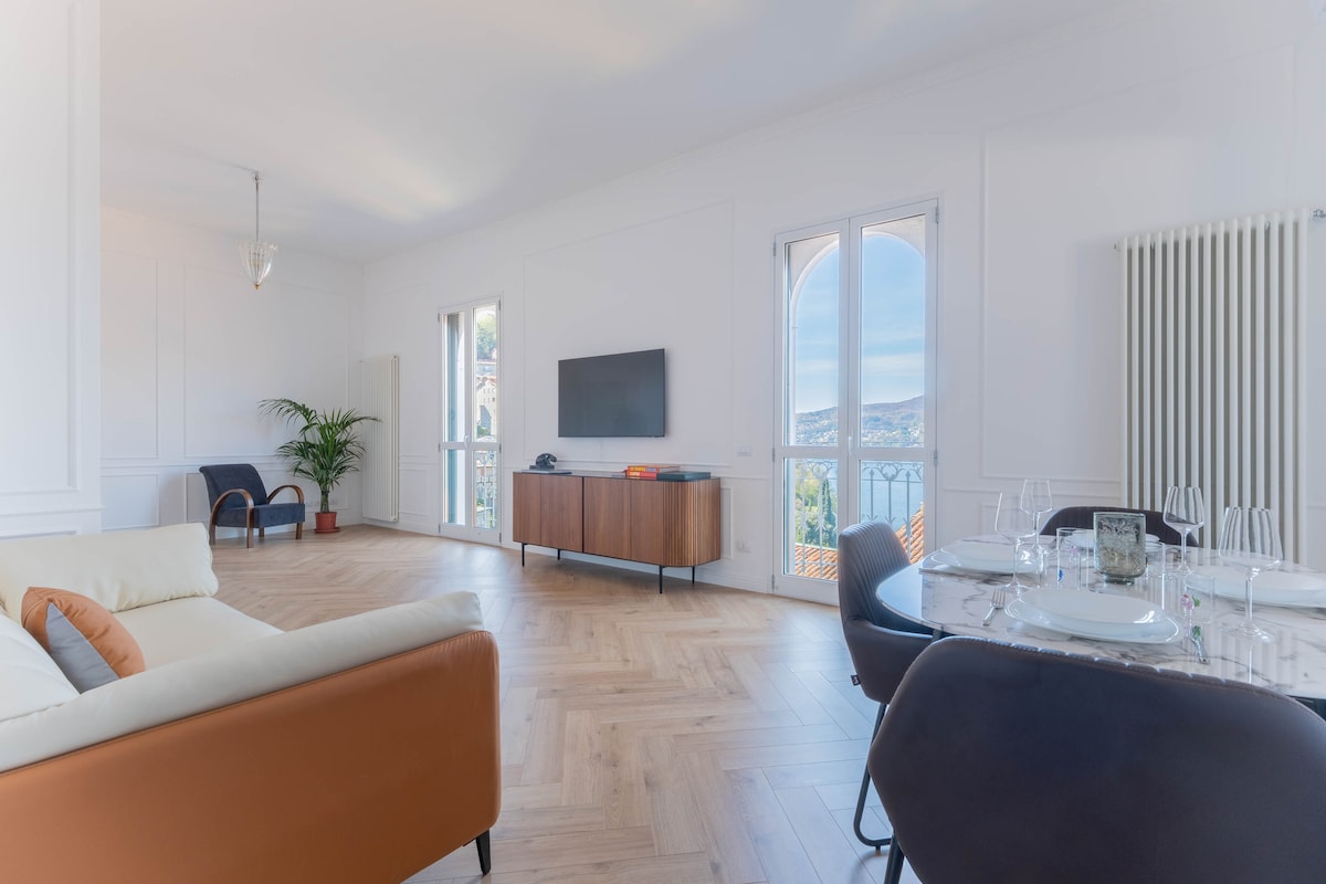 L'appartement 65 sm se situe au deuxième étage de la Villa Vittoria, une charmante villa Liberty, située au sein d'un parc centenaire à Blevio. Il dispose d'une chambre double, d'une cuisine ouverte sur un grand salon équipé d'un canapé-lit double, d'un lit pouf, d'une salle de bains avec douche et bidet et d'un balcon panoramique. Toutes les fenêtres de la maison offrent une vue suggestive sur le premier bassin du lac de Côme. L'appartement dispose d'une place de parking privée gratuite.