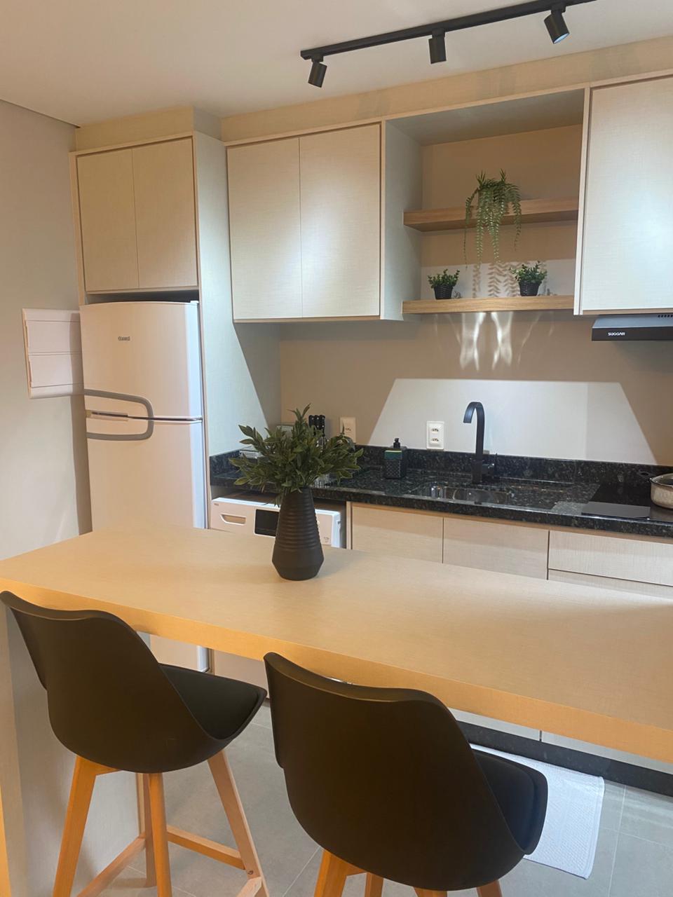 Apto alto padrão a 5min da Vila Germânica, hospedagem para famílias e executivos que desejam conforto e tranquilidade. A 50m de padaria e conveniência e a 900m supermercado, farmácia e restaurantes. Portas de vidro duplo com excelente conforto acústico e jardim de inverno na sala. Ar condicionado split em todos os ambientes! . Cafeteira elétrica, Airfry, sanduicheira, microondas, forno, taças de vinho e espumante. Tv 43” com Alexa, Netflix e Amazon prime