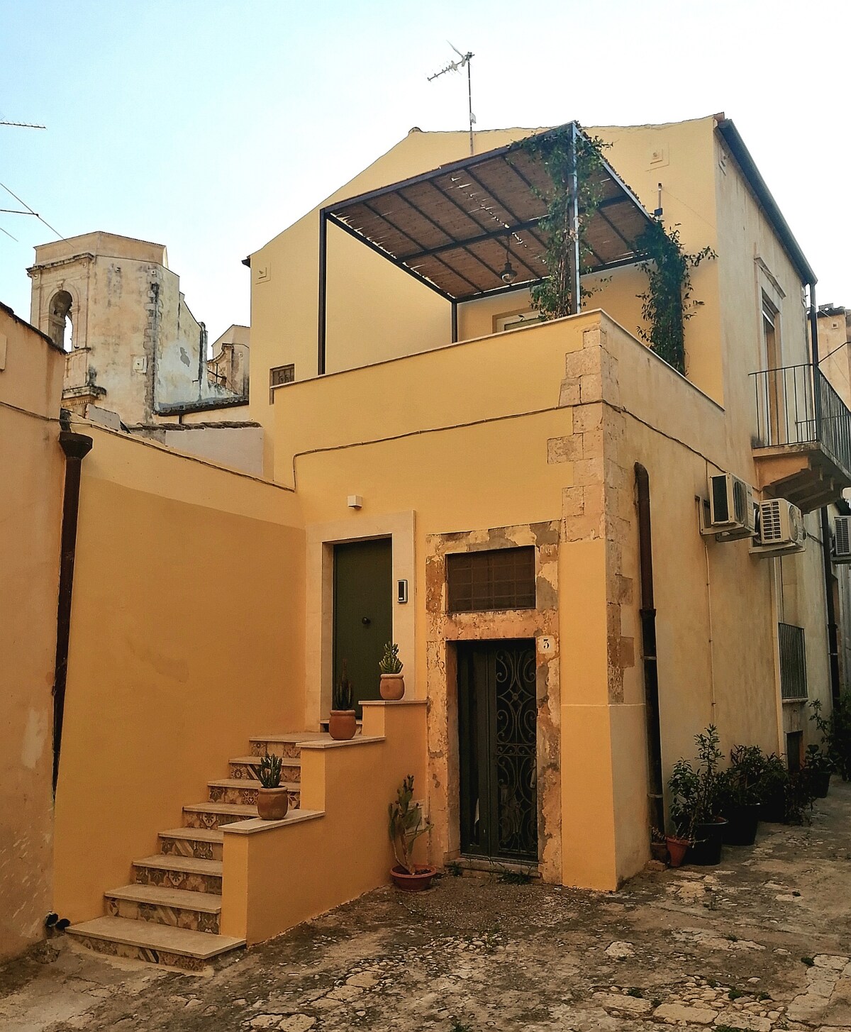 Située dans une ancienne maison seigneuriale, par des escaliers intérieurs, on accède à la chambre avec terrasse adjacente, avec tout le confort et récemment rénovée. La chambre est située à quelques mètres de la cathédrale de Noto, du palais Ducezio et du fantastique palais Nicolaci. Il est à environ 8 km de la mer, 10 km de l'Oasis Vendicari et 30 km de la ville de Syracuse. Facilement accessible depuis l'aéroport Fontanarossa de Catane (environ 50 minutes en voiture).