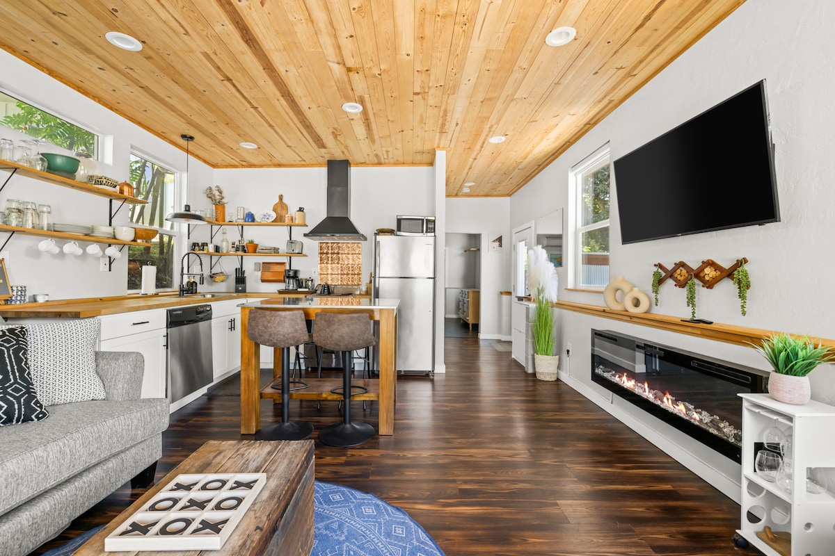 Charmant chalet privé indépendant dans le quartier très recherché de North End à Boise, dans l'Idaho. Cuisine entièrement équipée, jacuzzi privé, patio clôturé, lave-linge/sèche-linge, parking invité. Chambre avec lit queen-size et salle de bain complète. Proche des transports en commun, à 1 mile de Boise Greenbelt, du centre-ville de Boise, de Hyde Park et des contreforts de Boise. Parfait pour les couples et les voyageurs en solo.
