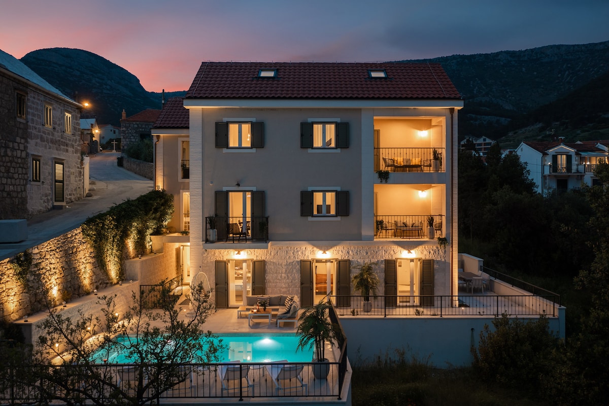 La Villa Blue Sky est une charmante maison en pierre construite avec le célèbre marbre blanc de Brač. Deux piscines installées dans un paisible jardin d'oliviers vous offriront de l'intimité, tandis que le centre-ville de Bol (300 m), l'épicerie, le marché aux poissons et la pharmacie ne sont qu'à quelques minutes à pied. La villa offre une vue magnifique sur la mer. Récemment construit dans un style dalmate traditionnel, l'intérieur moderne est équipé de tous les appareils et conforts pour un séjour parfait. Zlatni rat, la plage la plus populaire de Croatie, se trouve à seulement 1 500 m.