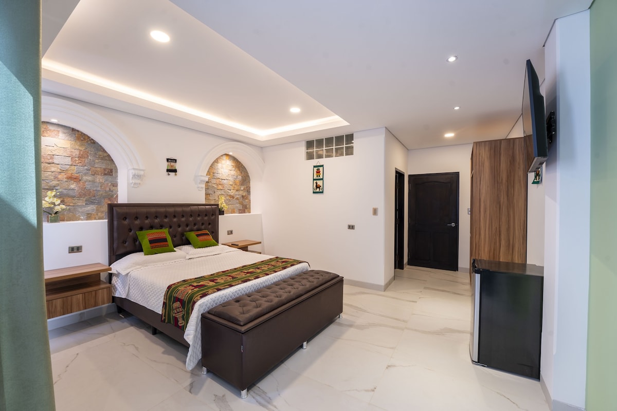 Profitez du confort d'une chambre d'hôtel dans le Hupermall exclusif, au cœur de Cochabamba. Avec un accès direct aux magasins, au cinéma, à la salle de sport et à une aire de restauration variée, vous serez entouré de la meilleure ambiance de la ville. À quelques pas, découvrez des cafés et des restaurants pour tous les goûts. Idéal pour ceux qui recherchent confort et commodité dans le meilleur emplacement de Cochabamba. Service disponible moyennant un coût supplémentaire : * Petit déjeuner 70 Bs/jour * Nettoyage quotidien 50 bs/nettoyage * Parking 25 bs/jour