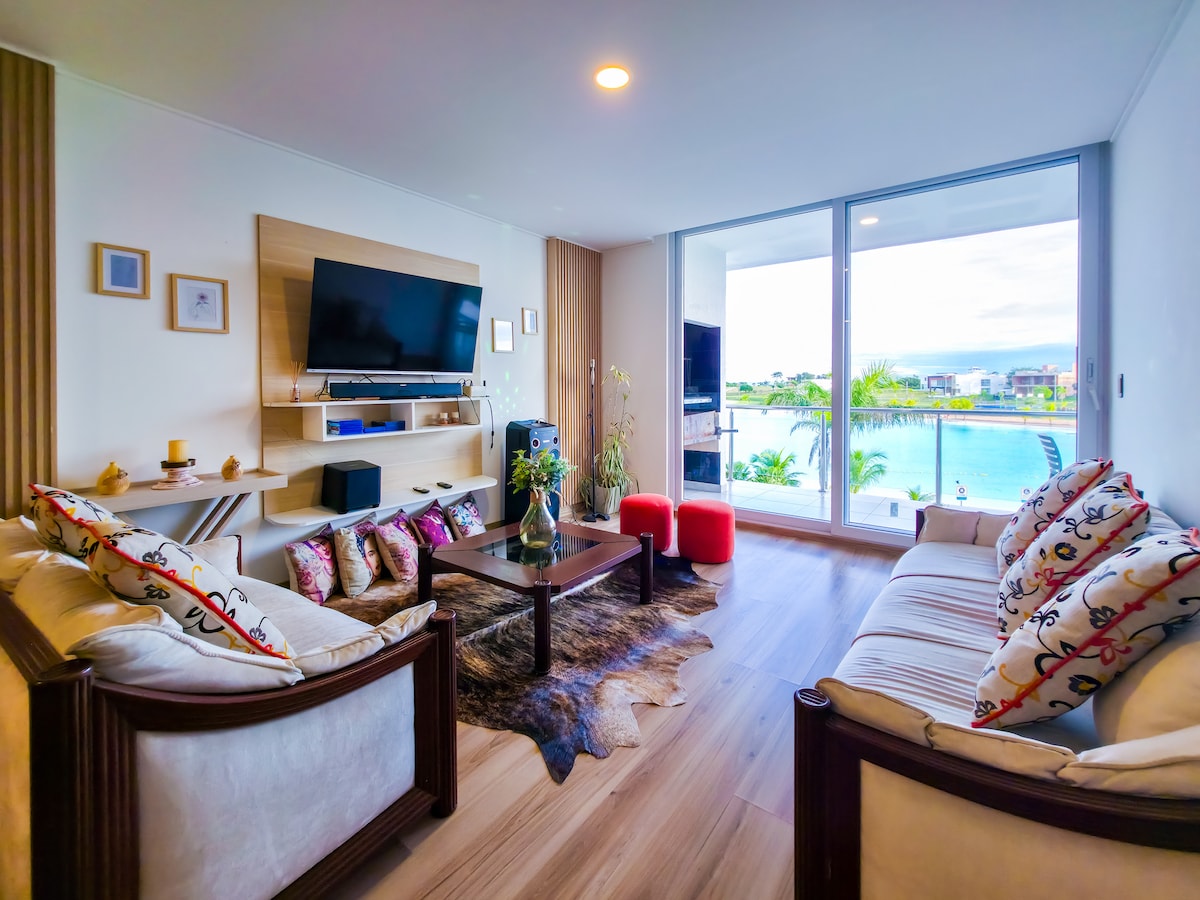 Regálate una escapada sin alejarte de la ciudad y vive Mar Adentro desde este amplio departamento en la torre más nueva y exclusiva. Despierta con vista a la playa, relájate en su terraza privada con churrasquera y disfruta una sala elegante con sonido Bose, TV de 70”, streaming e internet. Incluye cocina totalmente equipada, dormitorio con vestidor y baño privado, lavadora y parqueo gratis. Disfruta del acceso a playa, restaurantes, bar tiki y actividades acuáticas para tu descanso.