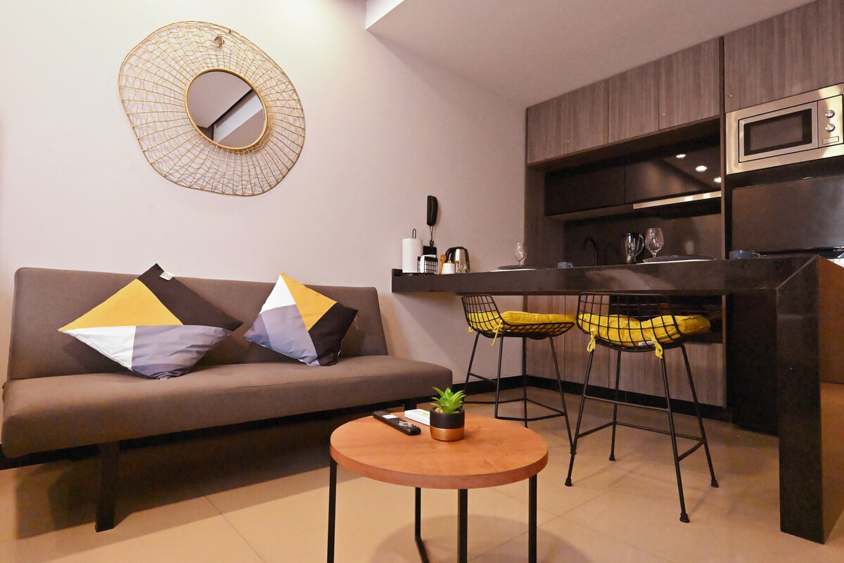 Magnifique appartement situé dans un quartier privilégié de la ville, meublé et équipé de l'essentiel pour un séjour agréable. Le studio dispose d'un lit super king size, salon-salle à manger, grande cuisine, placard, balcon avec vue imprenable sur la ville et salle de bains privée. Accès à la piscine, au Resto-Bar, à la salle de travail, à la salle de divertissement, à la table de billard, au barbecue et aux environnements extérieurs avec une belle vue sur Equipetrol au 7ème étage.