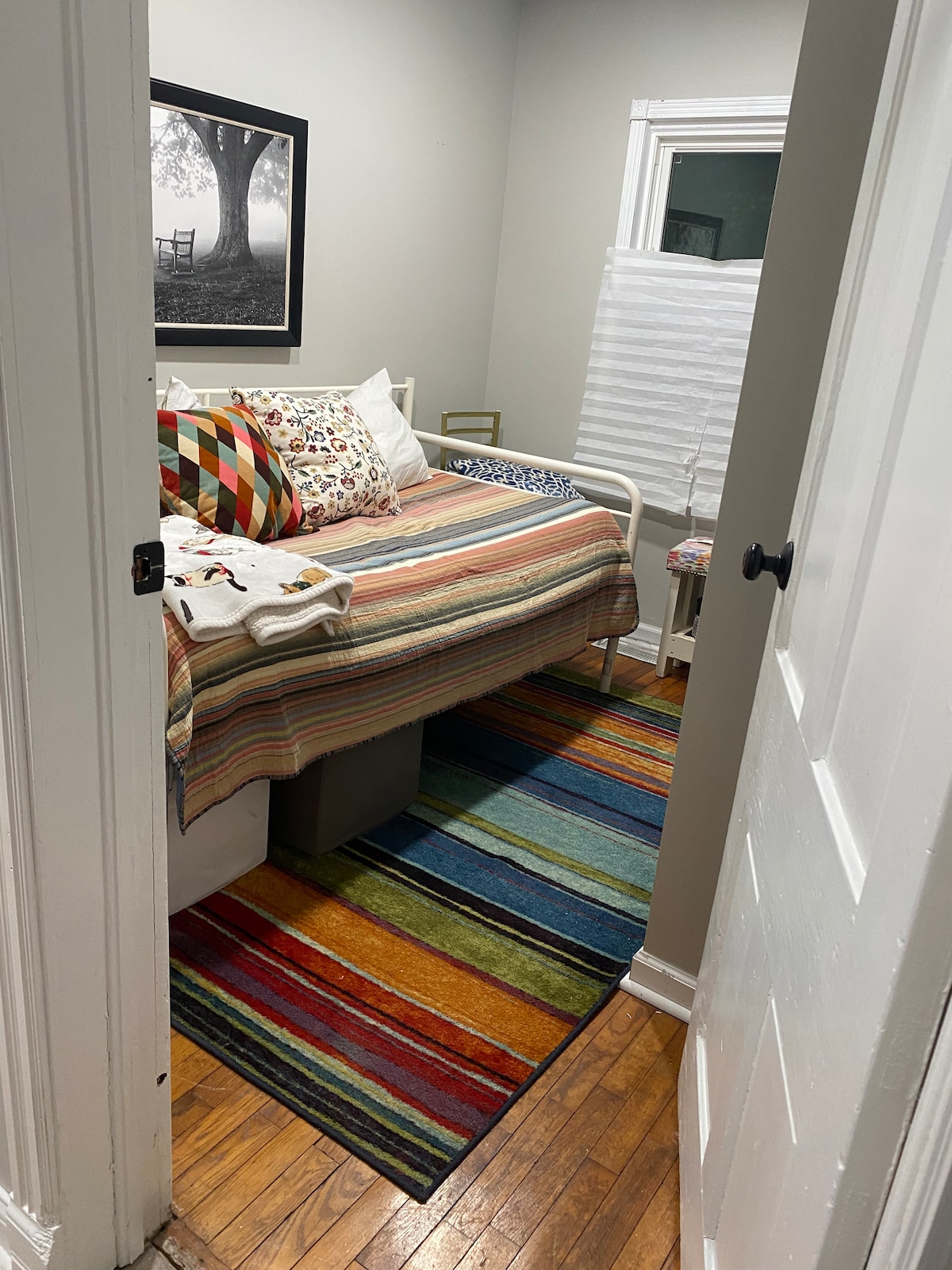 Cet appartement unique est parfaitement niché entre Main Street et Benders Alley dans le village de Zionsville. À distance de marche des boutiques, des cafés, des bars à vin, des restaurants, des parcs et plus encore ! Nous sommes à 10-30 minutes de nombreux endroits ! Un lit/une salle de bain situés au deuxième étage du bâtiment. Nous avons du café filtre, une cafetière à piston, un grille-pain, un four, un micro-ondes et 2 téléviseurs intelligents auxquels vous pouvez vous connecter. Le canapé vert se replie dans un lit de grande taille si nécessaire. Nous espérons que vous apprécierez ce petit bijou !!