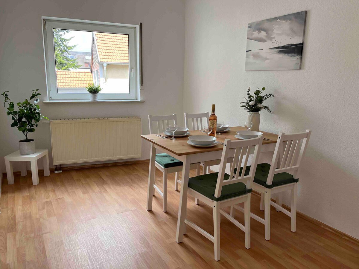 Un petit appartement confortable. Central, mais situé au calme dans la nature. L'appartement offre tout pour un séjour court ou long. Il dispose d'un bel espace de couchage, d'une cuisine entièrement équipée, ainsi que d'un coin salon confortable avec télévision et bureau. Un petit espace confortable sur la terrasse invite à la détente. Notre étang de baignade offre de nombreuses possibilités. Parking gratuit juste devant la porte. Les vélos peuvent être garés dans la cour.