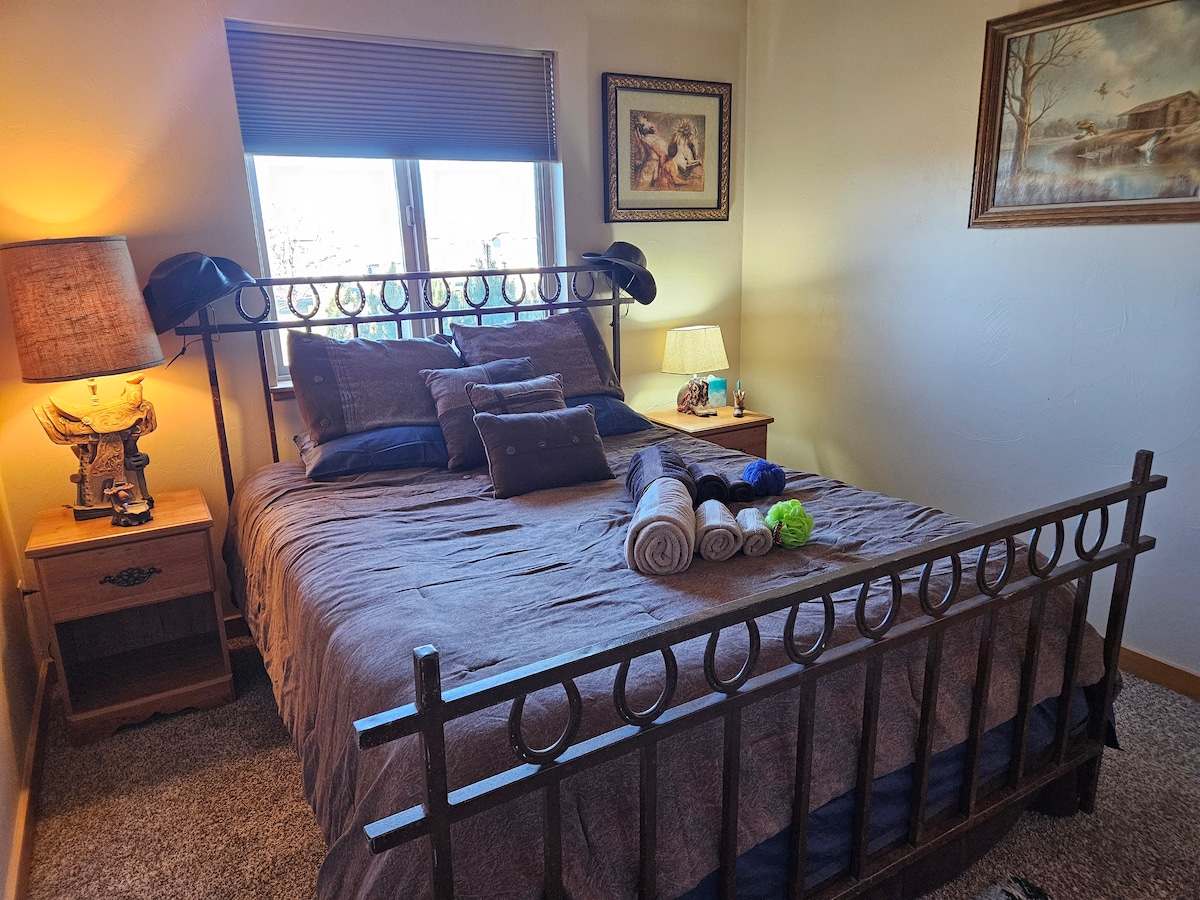 Confort rafraîchissant, propre et calme pour un voyage au parc de Yellowstone ; à 8 minutes de l'aéroport international de Bozeman Yellowstone et juste à côté de l'autoroute. Une chambre lumineuse avec vue sur les montagnes Bridger ; lit Queen Size, dans une communauté familiale. À côté de l'autoroute 85, la route vers l'entrée ouest de YP et les sources chaudes de Bozeman. Sentiers pédestres avec un étang pour la baignade. À 8 miles de Bozeman. J'ai également une autre chambre Queen (louée séparément) si vous êtes un groupe ou une famille de 4 personnes. Le petit-déjeuner continental comprend des produits de boulangerie frais.