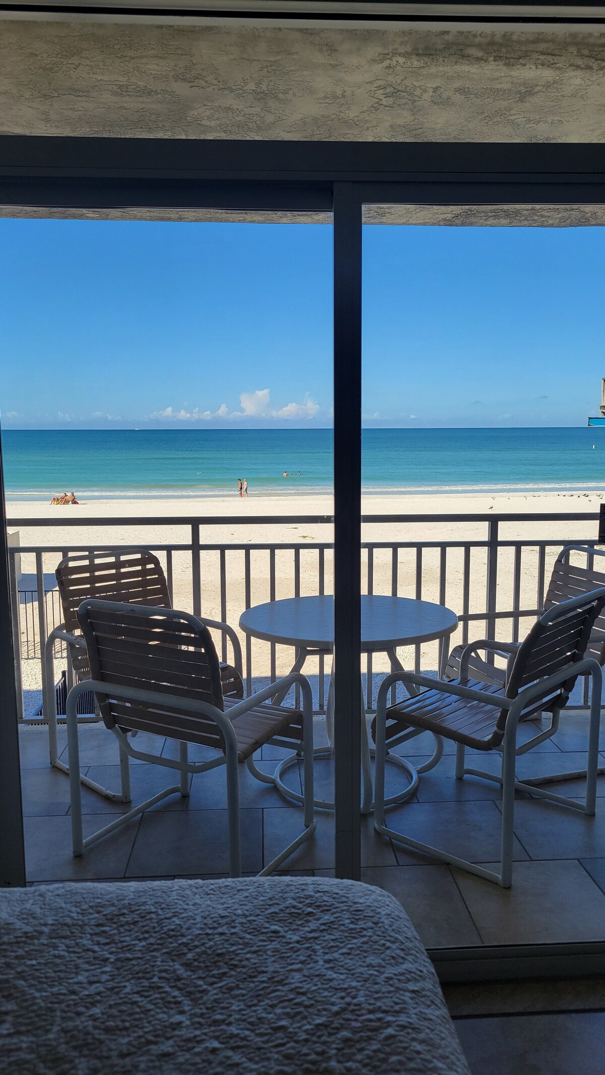 Vous n'avez qu'à descendre 14 escaliers de votre appartement en bord de mer au deuxième étage pour avoir vos orteils dans le sable fin. Un lit queen size avec un matelas moelleux dans la chambre et un canapé convertible queen size dans le séjour. Cuisine complète dans l'appartement et buanderie disponible en bas. Câble et Internet haut débit inclus. Une place de stationnement attribuée. Profitez du coucher du soleil depuis votre balcon en se baignant dans le golfe. Parfait pour une escapade romantique en couple ou pour un séjour amusant à la plage