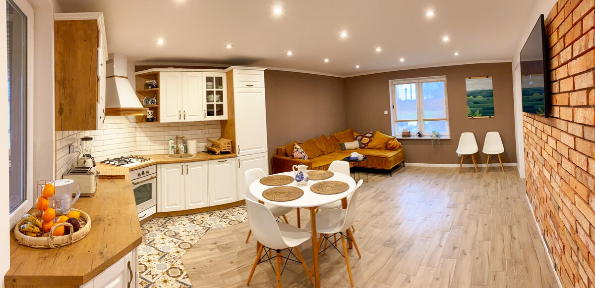 Cet appartement confortable et confortable dispose d'un lit queen et d'un canapé-lit pouvant accueillir 2 personnes. Il est situé en bordure du site du patrimoine mondial de la forêt de Białowieża. 4 vélos sont montés sur le mur de la chambre pour que vous puissiez les utiliser à votre convenance. Il y a de nombreux sentiers dans et autour de la région, y compris des pistes cyclables entre les villages et les sentiers à travers la forêt. La forêt commence juste en bas de la rue de l'appartement. C'est la dernière forêt ancienne d'Europe qui abrite la plus grande population de bisons d'Europe.