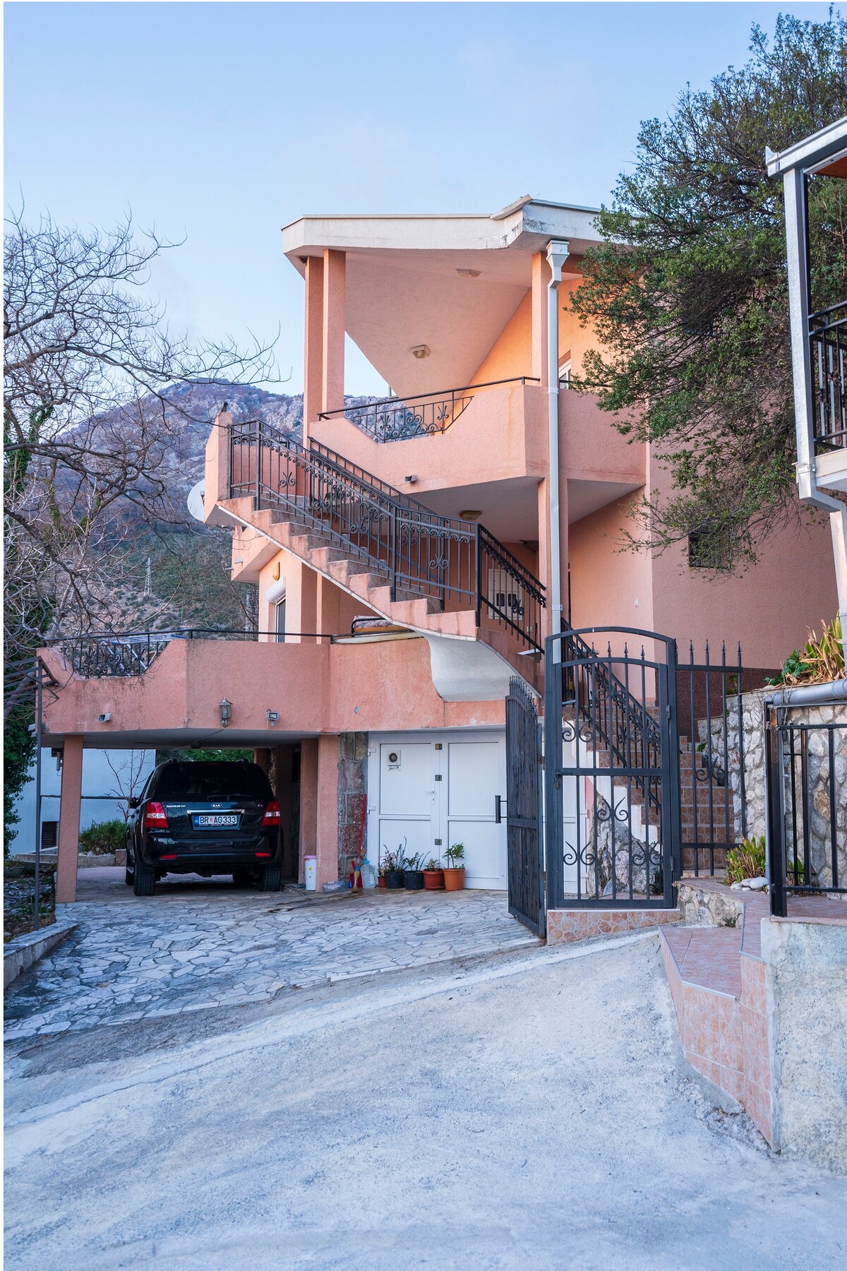 Logement de luxe sur une ancienne propriété familiale, à 4,5 km du centre de Bar. Vous pourrez profiter d'une ambiance méditerranéenne authentique entourée d'un jardin de 15 000 m ², avec les fruits et oliviers subtropicaux plantés, offrant la plus grande intimité et la paix. La villa Tai est accompagnée d'une piscine à débordement privée et d'une terrasse de 90 m2 offrant une vue inoubliable sur la mer Adriatique et la ville. Vous aurez l'occasion rare de boire de l'eau de source. Espace de stationnement gratuit et vidéosurveillance fournis.