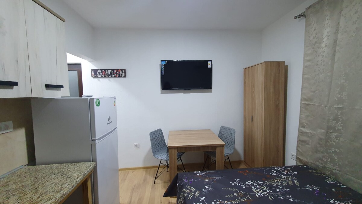 Bonjour ! Bienvenue dans mon appartement récemment rénové situé dans le quartier central de Bar, à 10 min à pied de la plage. Beaucoup de magasins à proximité, et il y a une gare routière juste devant le bâtiment. L'appartement est au 4e étage avec une vue étonnante et il y a un ascenseur :) Pour toute question, n'hésitez pas !