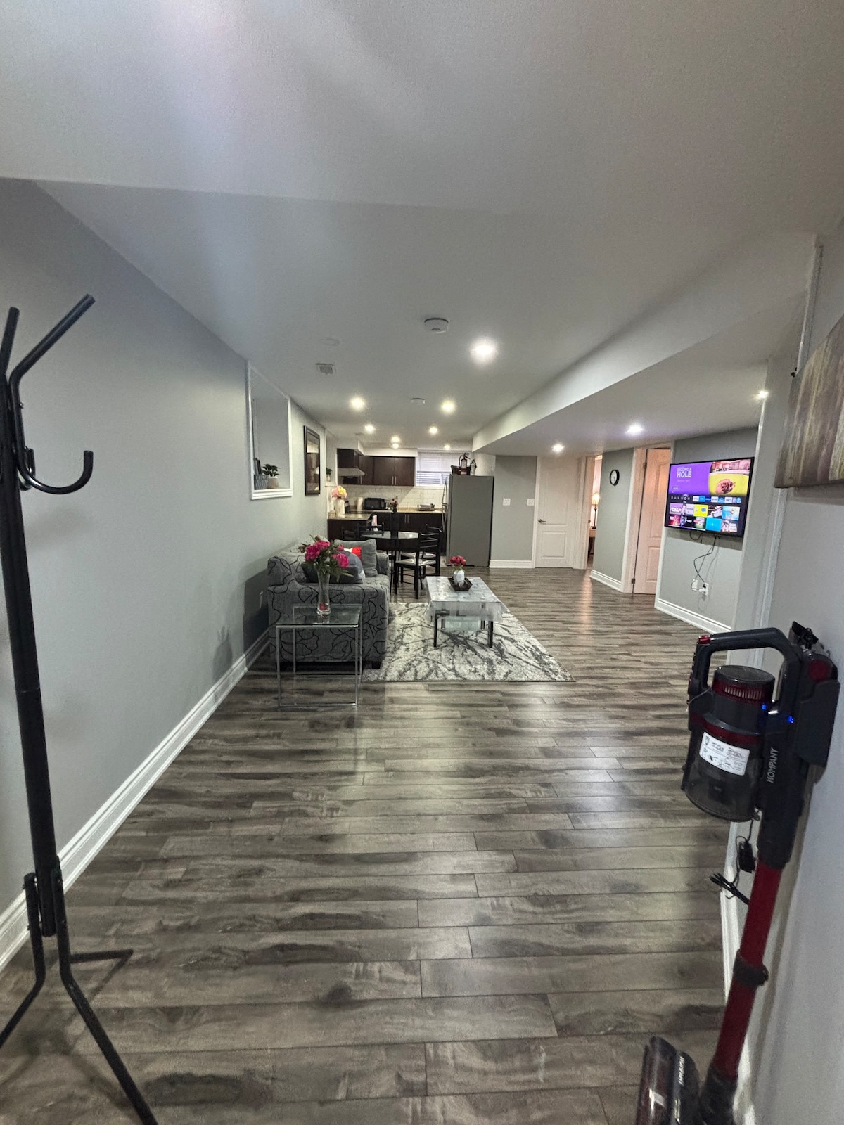 Come stay here on the border of the grand river. This beautiful separate entrance basement gives you all the privacy you need. Not only is the place fully furnished, it’s only a 5 minute walk to multiple trails, and the grand river. The basement features a 55 inch smart tv, 2 bedrooms, a living and dining room. Both rooms have a queen sized bed, with an extra mattress(also queen) available. You get a stationary bike, books, and so much more! What are you wanting for? Book today!