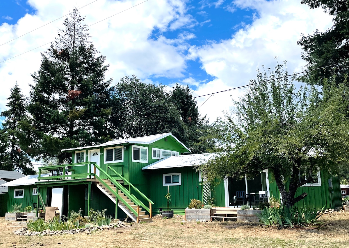 Sérénité au cœur du comté de Humboldt Profitez du lever et du coucher du soleil sur les superbes collines de Humboldt dans notre ferme hors réseau de la communauté de Salmon Creek. Juste à côté de l'avenue des Giants et à proximité des parcs d'État et de l'océan, cette retraite paisible offre de l'énergie solaire, de l'eau naturelle du ruisseau, des sentiers boisés et un ruisseau privé pour se baigner. Après avoir réservé, ajoutez une expérience de guérison d'une heure avec Sara, y compris le reiki, le tarot et la médiumnité, pour un séjour transformateur.