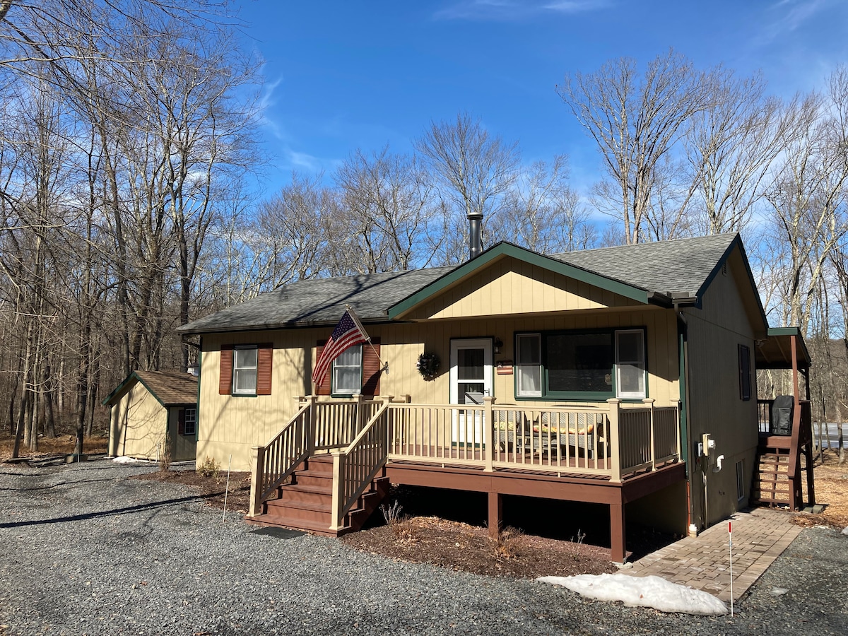 Retraite dans une cabane moderne isolée dans les montagnes Pocono. Trouvez votre retraite paisible à quelques minutes de tout ce que les Poconos ont à offrir. Détendez-vous autour du foyer ou aventurez-vous dans l'une des nombreuses attractions locales. CHIENS BIENVENUS La cabane dispose de 3 chambres sur un terrain de 3,7 acres avec une vue spectaculaire sur la montagne Shawnee et un JACUZZI ! Les équipements modernes comprennent une connexion Wi-Fi et une télévision connectée. Charme rustique avec des puzzles, des jeux et un espace extérieur pour vous déconnecter. Profitez d'une cuisine complète ou dînez dans nos restaurants locaux.