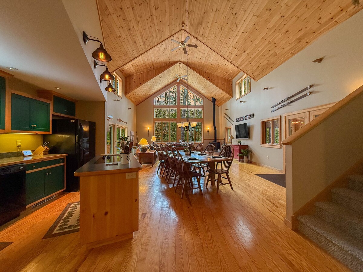 Nous avons construit la cabane Wren pour qu'elle soit un espace serein rempli de lumière et d'art et avec beaucoup de détails confortables. Plafonds en mezzanine, escalier en colimaçon et grand concept ouvert avec chambre en mezzanine. La cabane dispose également d'un magnifique sauna au feu de bois pour les jours les plus froids. Le chalet Wren dispose d'une grande terrasse enveloppante pour se détendre et d'un foyer extérieur, ainsi que d'un accès partagé à Adams Pond. L'espace est moderne et scandinave, lumineux et aéré, et rempli de détails bien pensés.