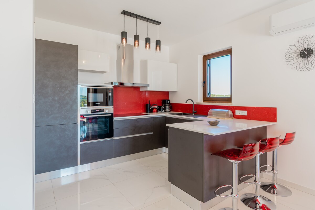La Villa Lunetta est une retraite moderne nichée au cœur de l’Istrie, alliant confort contemporain et charme local authentique. S'étendant sur 230 m² sur un rez-de-chaussée et une chambre en mezzanine, elle offre beaucoup d'espace pour se détendre. Les voyageurs peuvent profiter d'une piscine à débordement privée, d'une aire de jeux pour enfants et d'un jardin, tous réservés exclusivement à leur usage. Entourée de superbes vues panoramiques, les VOYAGEURS disent que la villa offre une escapade sereine où la paix et la détente viennent naturellement, ce qui rend difficile de partir.