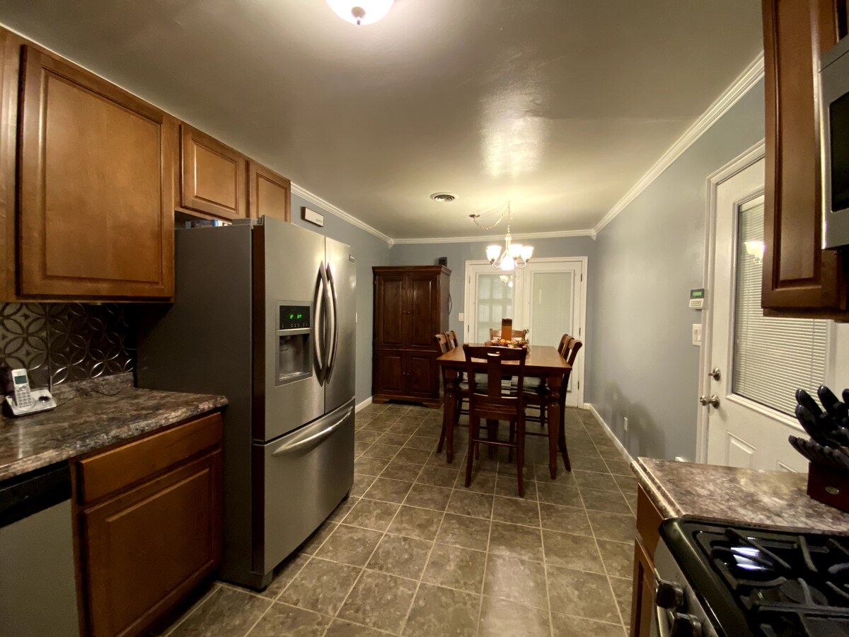 Bienvenue à la maison WaHaYa, cette maison a vraiment tout pour plaire : commodité, confort et espace ! Située à l'avant d'un quartier modeste et sûr avec un accès facile à l'autoroute. Cette retraite familiale dispose d'une suite King spacieuse et d'un grand espace de vie ouvert salon/cuisine. Préparez un repas dans la cuisine approvisionnée ou sur le gril à gaz dans la cour clôturée. La zone du foyer est parfaite pour les S'mores ! À 3 miles du centre-ville de Jenks, de l'aquarium et de Riverwalk. À 10 miles du Gathering Place. À 12 miles du centre-ville de Tulsa.