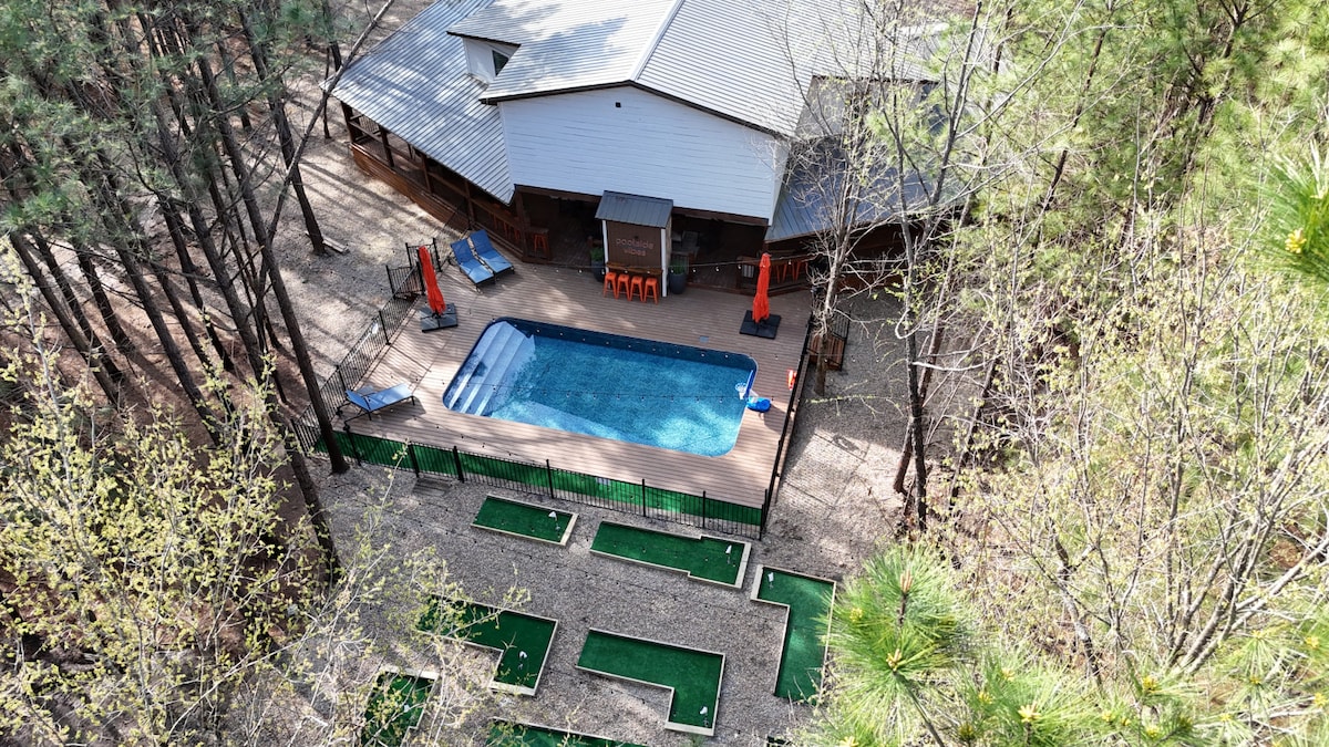 Escape to Skipping Stones, a high-luxury resort-style cabin designed for unforgettable getaways. Surrounded by towering pines, this modern retreat perfectly blends high-end comfort with non-stop entertainment. ✔ NEW: Private Heated Pool & Mini-Putt ✔ 2 King Master Suites + Custom Queen Bunkloft ✔ Private Hot Tub & Outdoor Fireplace ✔ Shuffleboard & Board Game Collection ✔ Fully Stocked Gourmet Kitchen ✔ Fire Pit Area ✔ Cornhole & Horseshoes ✔ High-End Modern Finishes ✔ Dog Friendly, No Pet Fee
