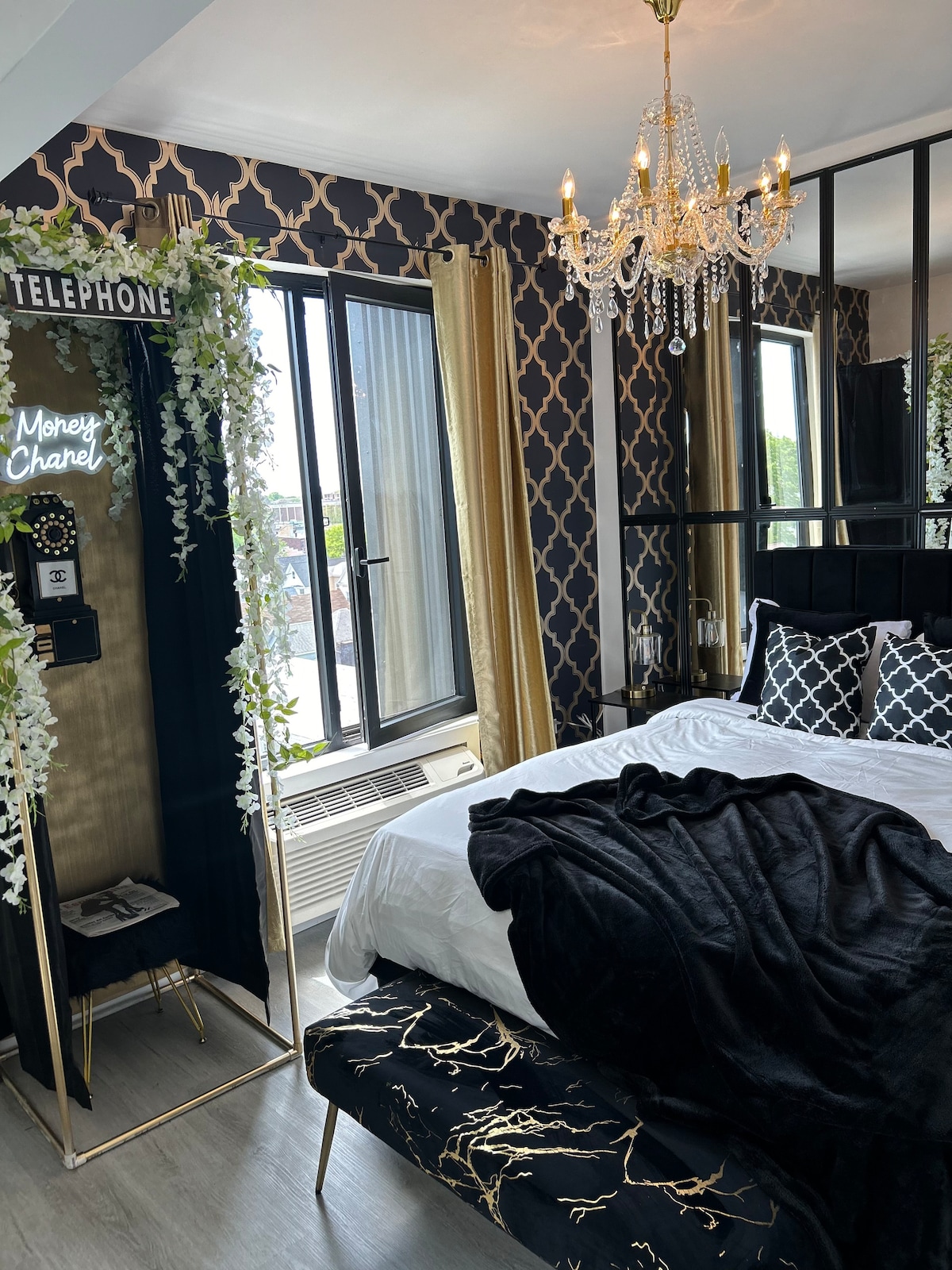 Nous savons simplement que vous allez adorer votre séjour dans notre Luxe Glass house 2. Profitez d'une bonne nuit de repos sur notre matelas Queen avec plateau-coussin. Entrez dans un fond de miroir personnalisé comprenant un magnifique lustre en cristal dans la chambre. Cabine téléphonique photo personnalisée à côté de notre baignoire sur pieds en fonte sur mesure. À seulement 7 minutes de l'EWR et à 27 minutes de New York. Profitez d'une belle vue sur la ville avec nos fenêtres surdimensionnées ! Nous nous engageons à offrir à nos voyageurs de la Glass House une expérience 5 étoiles !✨