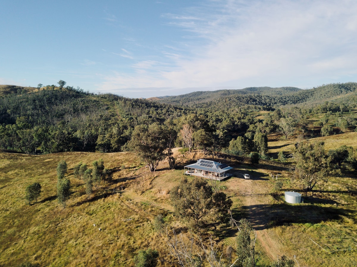 Foxtrotfarmstay is on insta to see a clearer picture of what you will immerse yourself in during your stay. 2 spacious bedrooms, A lux bathroom with free standing bath and a beautiful open-plan kitchen /lounge with magnificent views of folding hills and vast countryside. Unwind and exhale into amazing sunsets with our beautiful Texas long horn cows Jimmy & Rusty or take a walk around the property and explore. Electric blankets on all beds in colder months.AND look out for fox 🦊 on the trot