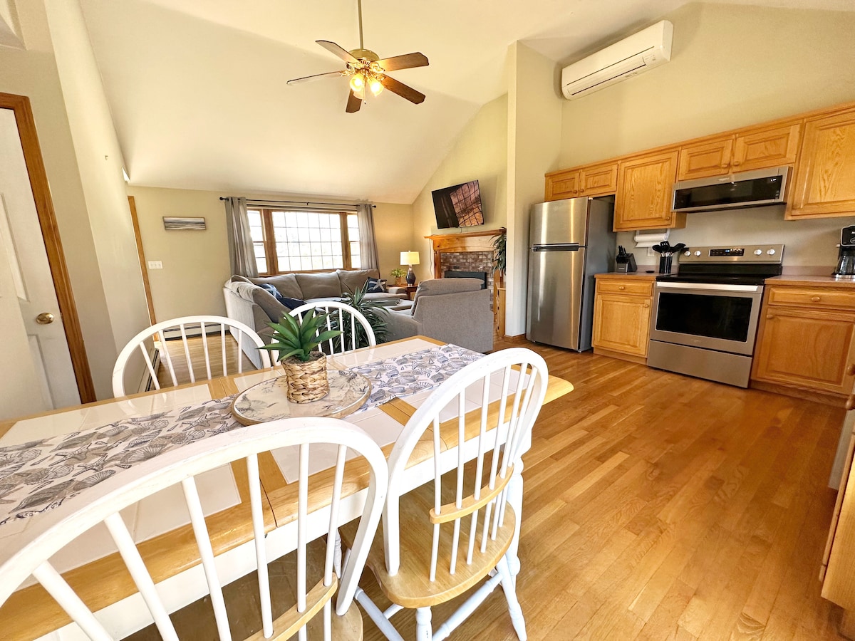 Une maison familiale 4 saisons lumineuse avec trois chambres, deux salles de bains complètes, une climatisation centrale et une immense douche extérieure à Harwich, MA. Cette maison est en retrait de la route avec un feuillage offrant de l'intimité et une grande cour arrière. Le salon principal dispose de magnifiques planchers de pin larges et d'un plan d'étage ouvert avec une cuisine lumineuse entièrement équipée et des plafonds voûtés. Avec une immense cour arrière avec beaucoup d'intimité, elle est parfaite pour se détendre entre amis ou en famille. Proche de la piste cyclable.