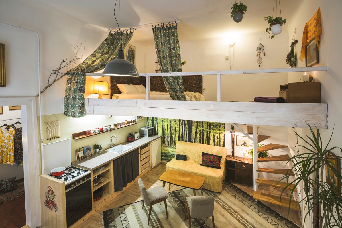 SI VOUS :♥ êtes un esprit libre à la recherche d'un abri authentique ;♥ aimez les VINYLES ;♥ voulez vous asseoir sous les ARBRES en plein cœur de la capitale ; avez♥♥ besoin d'un BUREAU À DOMICILE avec un BUREAU CONFORTABLE et une connexion WI-FI ultra rapide ; avez besoin d'un TAPIS DE YOGA pour votre pratique♥ ; voulez profiter d'une MAISON entièrement équipée avec possibilité de CUISINER et MACHINE À LAVER ? NE CHERCHEZ PLUS, vous avez trouvé votre espace ! Avec ma femme, nous avons créé cet intérieur de nos propres mains, au nom de l'upcycling et de l'amour du style authentique de Budapest. Bienvenue dans notre PARADIS URBAIN FUNKY !