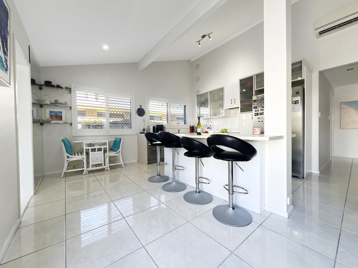 Notre maison est juste en face de l'une des plages les plus populaires. L'emplacement est inoubliable, à quelques pas de Point Cartwright le long de la plage ou sur le chemin pour une vue spectaculaire sur Mooloolaba et au sud jusqu'à Caloundra. Profitez de beaux levers et couchers de soleil. Endroit fantastique pour courir, faire du vélo, du surf, du kite surf, du SUPS et du ski. Le centre commercial Local Kawana est accessible à pied. Il est parfait pour les couples, deux amis, les personnes seules ou les voyageurs d'affaires.
