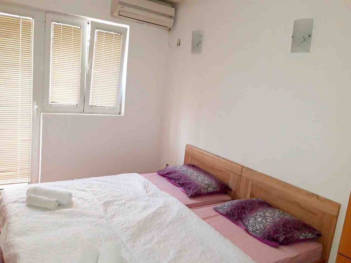 En visitant Budva, nous pouvons vous offrir le logement idéal, à 5 minutes à pied de la plage depuis le logement. Notre appartement se compose d'un salon, d'une cuisine et d'une salle de bain, dans le vieux style. Comme vous pouvez le voir sur les photos, la chambre, le salon et la cuisine sont une grande pièce (studio). Il a également: - des livres sur le Monténégro dans différentes langues (français et italien); - tout pour cuisiner à la maison; - four micro-ondes; - bouilloire électrique; - réfrigérateur; - climatiseur; - chauffage dans la chambre et la salle de bain (en hiver); - sèche-cheveux; - fer à repasser; - Internet WI - FI; - télévision par câble; - lit français (pour 2 personnes); - un canapé pour 2 personnes; - lit bébé, chaises hautes, poussettes, jouets, (tout pour les enfants); - lave-linge. Les draps et serviettes propres sont remplacés tous les 7 jours. Petit appartement avec 2 lits: un lit double et un canapé. La suite dispose également d'un lit bébé. L'appartement peut accueillir 4 adultes ou 2 adultes et 2 enfants. Il y a également une petite terrasse que vous pouvez utiliser. Dans un couloir commun, vous entrez dans l'appartement. Si vous avez besoin de quelque chose, vous pouvez facilement nous contacter. N'hésitez pas, nous pouvons vous donner des instructions sur la façon de visiter Budva et ses environs ainsi que le Monténégro.