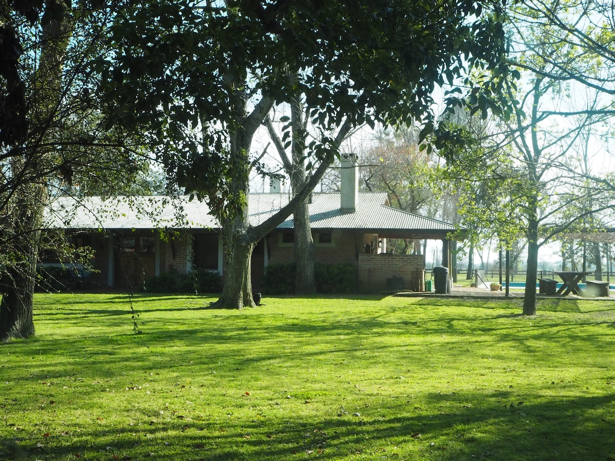 Disfruta una experiencia auténtica en el corazón de una estancia agrícola-ganadera en actividad. Esta casa principal, rodeada de una hectárea exclusiva y parquizada, ofrece un entorno ideal para grupos o familias. Relájate en sus amplios espacios, disfruta de la pileta y prepara asados inolvidables en sus distintas parrillas. Rodeado de naturaleza y tranquilidad, viví el encanto del campo con todas las comodidades para una estadía única.