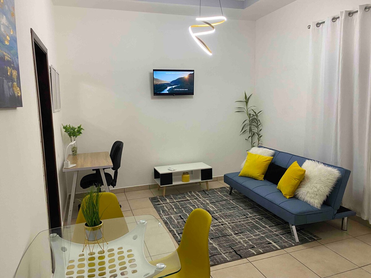 El estudio está muy bien equipado con todo lo necesario ideal para 2 personas que buscan un lugar tranquilo en buena ubicación Cuenta con una pequeña cocina, cama Queen size, área de trabajo, TV, baño privado. El estudio está en la segunda planta. 🏊El uso de la piscina es hasta las 10pm 🚫 No es permitido las visitas. 👮Solicitamos imagen del ID de los huéspedes. 🚬 No es permitido fumar. ⚡NO cuenta con generador eléctrico. Tomar en cuenta todos los reglamento.