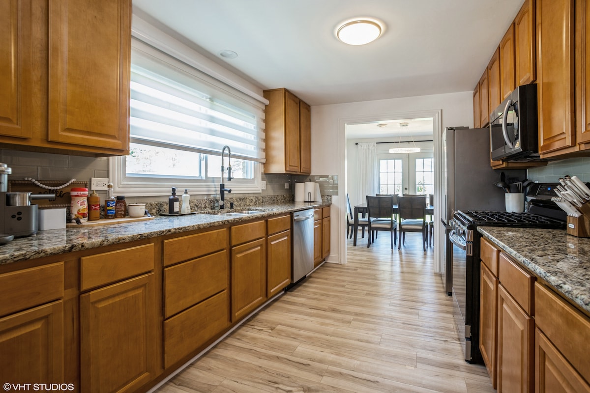 Maison de ranch unifamiliale entièrement rénovée et entièrement meublée avec beaucoup d'espace à moins de 10 minutes du centre-ville d'Arlington Heights. La maison est équipée de 3 lits Queen Size, 1 lit complet, un canapé-lit, une télévision de 65 pouces dans le séjour avec une barre de son et un caisson de basses, des téléviseurs de 43 pouces dans 3 des chambres et une télévision de 32 pouces dans la quatrième chambre. La grande terrasse à l'arrière est idéale pour se divertir. La maison dispose d'une table de billard qui est également idéale pour se divertir. Réservez votre séjour chez nous aujourd'hui !