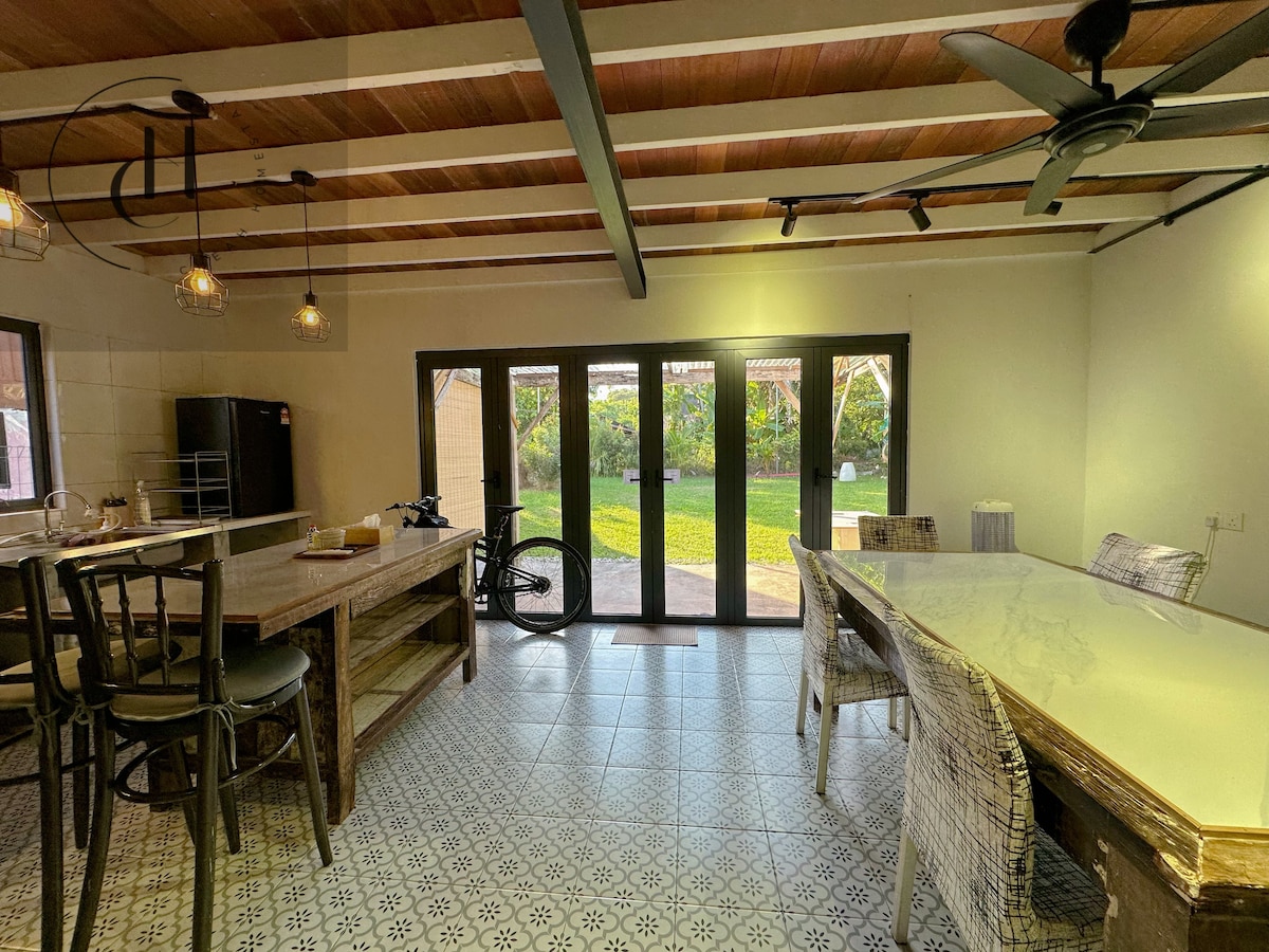 Nestled in the vibrant heart of Georgetown and surrounded by the calming embrace of Penang’s nature, Our Home offers a warm, Balinese-inspired cottage retreat for guests all year round. Thoughtfully furnished for comfort, the house features 6 beds and comfortably accommodates up to 10 guests. With its prime location, you'll find everything you need just a stone’s throw away, including major shopping malls (Komtar and Gurney Plaza), heritage sites, hotels, and a wide range of amenities.