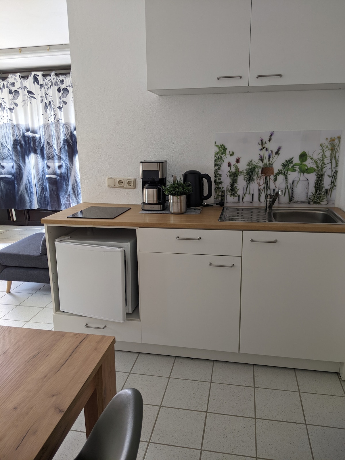 Appartement de vacances aménagé avec amour dans le style BoHo dans la Rhön, sur le Kunstanger à Langenleiten. Équipé d'une magnifique cheminée, vous vivrez dans une ambiance romantique. Détendez-vous avec un bon livre et un bon verre de vin. Profitez-en tout seul ou amusez-vous avec toute votre famille dans ce logement élégant. En été, vous pourrez profiter du grand jardin avec des hamacs, des chaises longues et un barbecue ainsi qu'un magnifique espace salon.