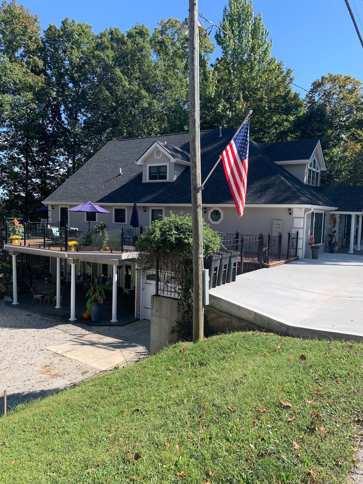 L'une des plus belles vues sur le lac niché dans la forêt nationale de Daniel Boone. Spacieuse maison de 4 chambres avec coin nuit au sous-sol avec matelas taille Queen en mousse à mémoire de forme. Grand jacuzzi sous un porche couvert et situé dans un complexe hôtelier privé et sécurisé avec plusieurs piscines, courts de tennis, sentiers pédestres/VTT, le tout à moins de 1 mile de la rampe de mise à l'eau. Nouveaux meubles et téléviseurs dans chaque chambre, salle de jeux au sous-sol avec bar/table de poker, jacuzzi dans la chambre principale. Vue imprenable sur le lac depuis chaque pièce ! Excellent WiFi pour travailler.