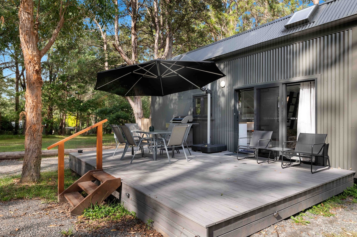 Nichée dans notre verger d'agrumes et de noix se trouve la « Cabine du capitaine ». Un refuge dans votre propre section privée du jardin, avec un bain extérieur incroyable, de nombreuses installations de cuisine à l'intérieur et à l'extérieur, et un foyer, sans oublier un lit Queen Size confortable avec du linge de maison et des serviettes naturels, c'est votre base pour une escapade parfaite à Kangaroo Valley. À 5 minutes à pied du centre du village et à 50 m de la piste cyclable et piétonne, c'est aussi l'emplacement idéal. Machine à café, tourne-disque et provisions inclus.