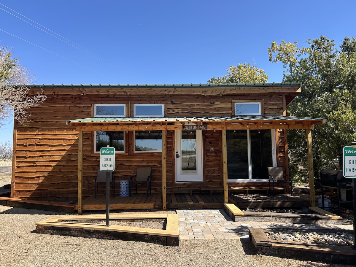 Rustic Highland est une petite cabane de luxe de 740 pieds carrés pleine de chaleur et de charme, avec des armoires teintées et des accents d'inspiration bohème. Le salon lumineux donne sur une cuisine entièrement équipée, et la salle de bain de type spa ajoute une touche de luxe. La chambre principale dispose d'un lit Queen Size avec de nombreux rangements, tandis que le loft offre un autre lit Queen Size et une vue imprenable sur le canyon. À l'extérieur, profitez du patio privé avec une table de bistrot et un barbecue, le tout situé au bord du canyon de Palo Duro pour une expérience inoubliable.