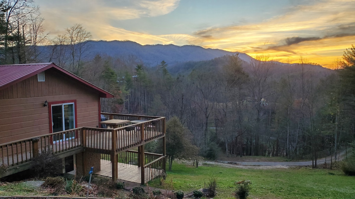 Située au sommet d'une montagne dans la forêt nationale de Cherokee, cette maison est l'escapade parfaite de la ville sans éclairage public ou bruit de moteur ! 4/10 de mille au lac Watauga et le sentier des Appalaches. >15 minutes à tyroliennes, randonnée & moins d'une heure aux pistes de ski NC. L'itinéraire vers la maison se fait sur des routes pavées, toutes saisons. L'allée est raide, mais un parking est également disponible dans la rue. Aucun FEU N'EST AUTORISÉ sur CETTE PROPRIÉTÉ.