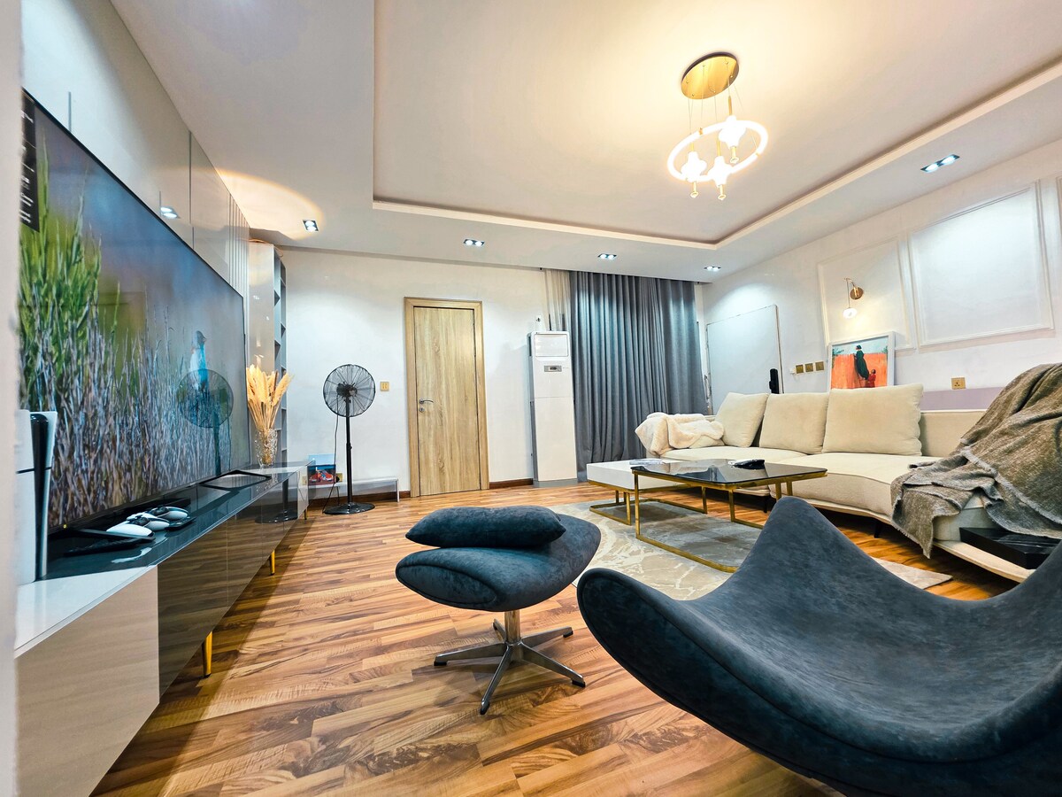 Découvrez un confort raffiné dans ce paradis élégant et spacieux de 2 chambres au cœur d'Abuja. À quelques minutes de Banex Plaza et de Wuse 2, cette retraite sereine offre des finitions élégantes et modernes, des balcons privés avec une vue imprenable sur la ville, une assistance dédiée 24 h/24 et 7 j/7 et une alimentation électrique 24 h/24 et 7 j/7 pour assurer un séjour sans accroc. Parfait pour les voyageurs qui apprécient l'intimité, la sophistication et toutes les petites touches de luxe qui rendent un séjour vraiment mémorable. Offrez-vous une escapade exclusive à Abuja. Réservez maintenant et faites-vous plaisir