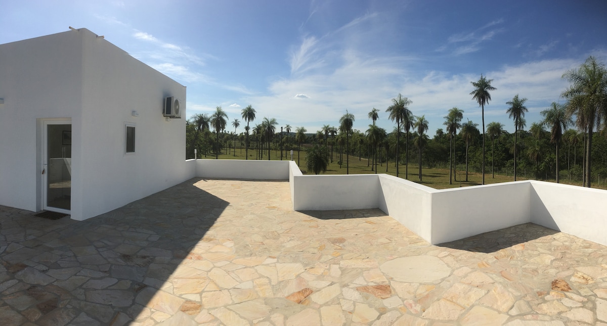 Nos encontramos en el Barrio Ecológico Ytu, a sólo 1h y pocos minutos de Asunción, 15 min de San Ber y 6 min de la Basílica de Caacupé. El predio cuenta con acceso al Arroyo Ytu y al Mirador "Jesús Misericordioso" La casa tiene capacidad de hasta 10 personas, se alquila por completo y de manera exclusiva para un solo grupo de huéspedes. De fácil acceso a sólo 1Km 1/2 de la ruta, calle empedrada. SI TE GUSTO ESTE LUGAR PARA UN FUTURO VIAJE, NO TE OLVIDES DE GUARDAR ENTRE TUS FAVORITOS :)