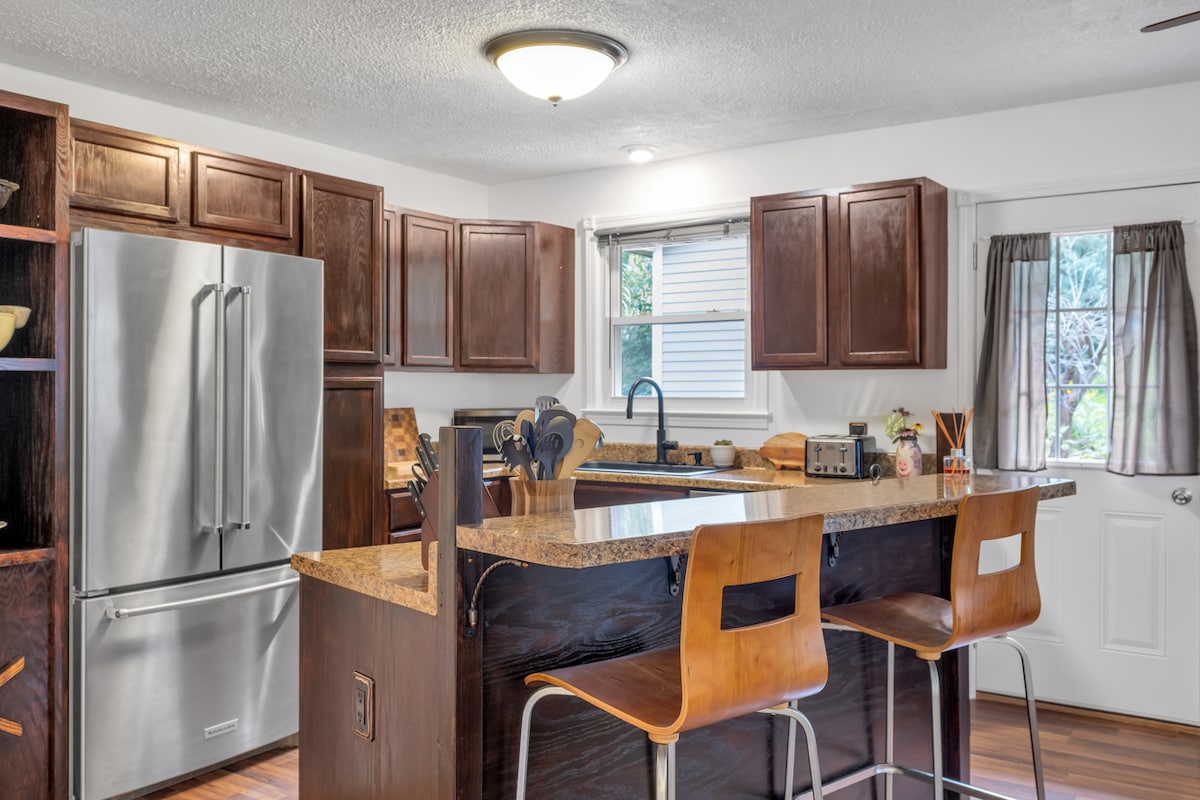 Évadez-vous dans le charme de la petite ville de Cadiz, dans le Kentucky ! Notre confortable location de vacances sur le thème de Cadix dispose de 3 chambres, 1 salle de bain, parfaitement située au cœur de Cadix. Explorez les boutiques, le lac, le musée d'art et les événements locaux. Retournez vous détendre dans notre salon confortable ou préparez un festin du sud dans la cuisine entièrement équipée. Détendez-vous sur le patio pittoresque, entouré de jardins saisonniers luxuriants, où vous pourrez déguster votre café du matin ou votre cocktail du soir. Imprégnez-vous de l'atmosphère paisible de la campagne du Kentucky !