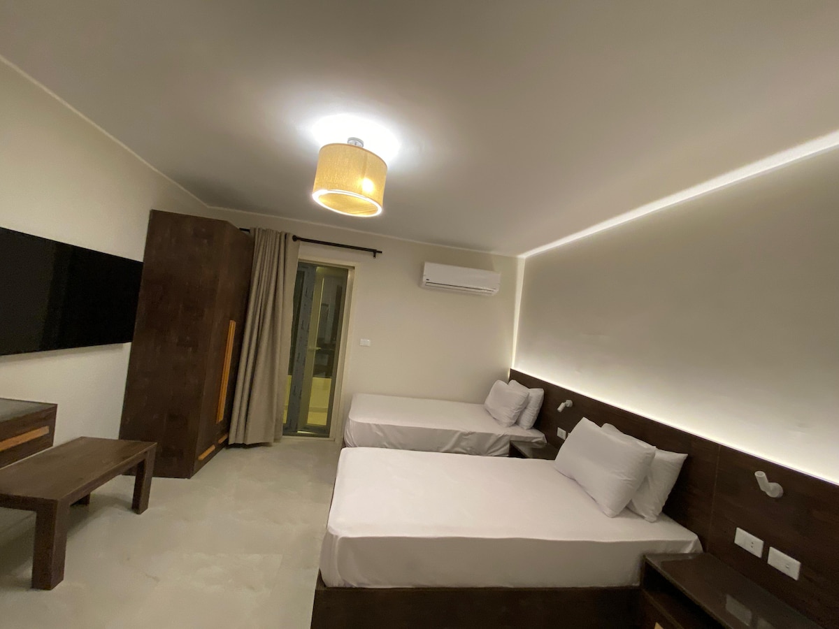 Vous adorerez ce logement pour son jardin et sa piscine uniques avec une belle salle à manger extérieure. En outre, le service complet de petit-déjeuner égyptien, de ménage et de dîner en option offert par l'aide domestique vous permet de vous détendre complètement et d'en profiter. Les boissons et la nourriture sont délicieuses. Les personnes qui vous servent sont exceptionnelles en raison de leur gentillesse et de leur attitude serviable pour tout ce dont vous avez besoin. Quoi que vous planifiez en Égypte, je suis à votre disposition pour des recommandations. Bienvenue 🤗