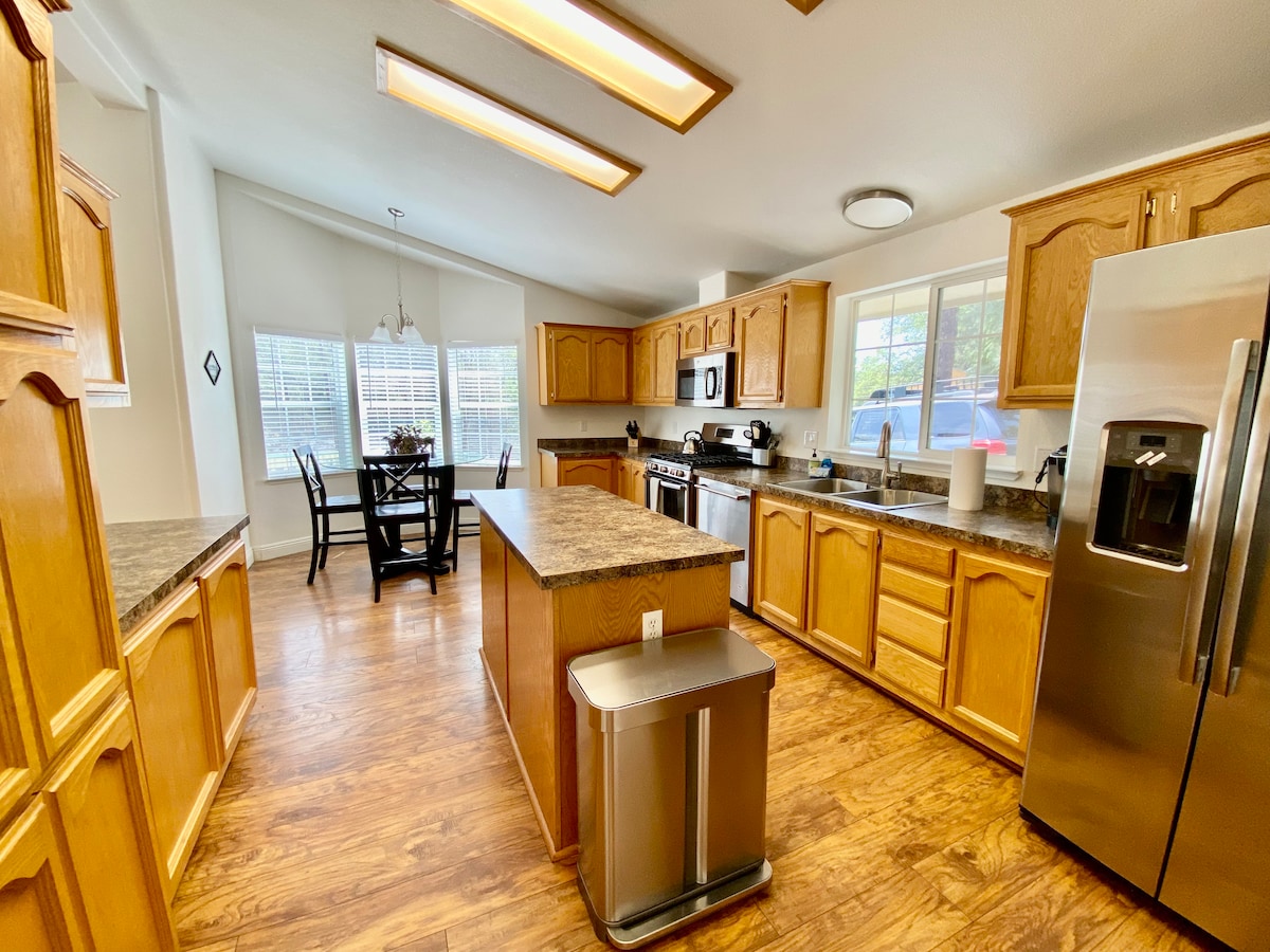 Bienvenue aux voyageurs dans notre maison de montagne reposante, pour poser votre tête et vos effets personnels, puis vous diriger vers la nature pour toute aventure que vous pourriez désirer. Venez escalader une montagne ou sauter dans un lac, puis revenez vous reposer dans cette maison propre et confortable semblable à un chalet. Nous avons une sonnette extérieure avec caméra Ring, près de la porte d'entrée, qui détecte les mouvements, enregistre l'audio et la vidéo. Cela informe les hôtes de l'arrivée des colis et des voyageurs. Les voyageurs peuvent appeler l'hôte pour obtenir de l'aide pour entrer dans les lieux.