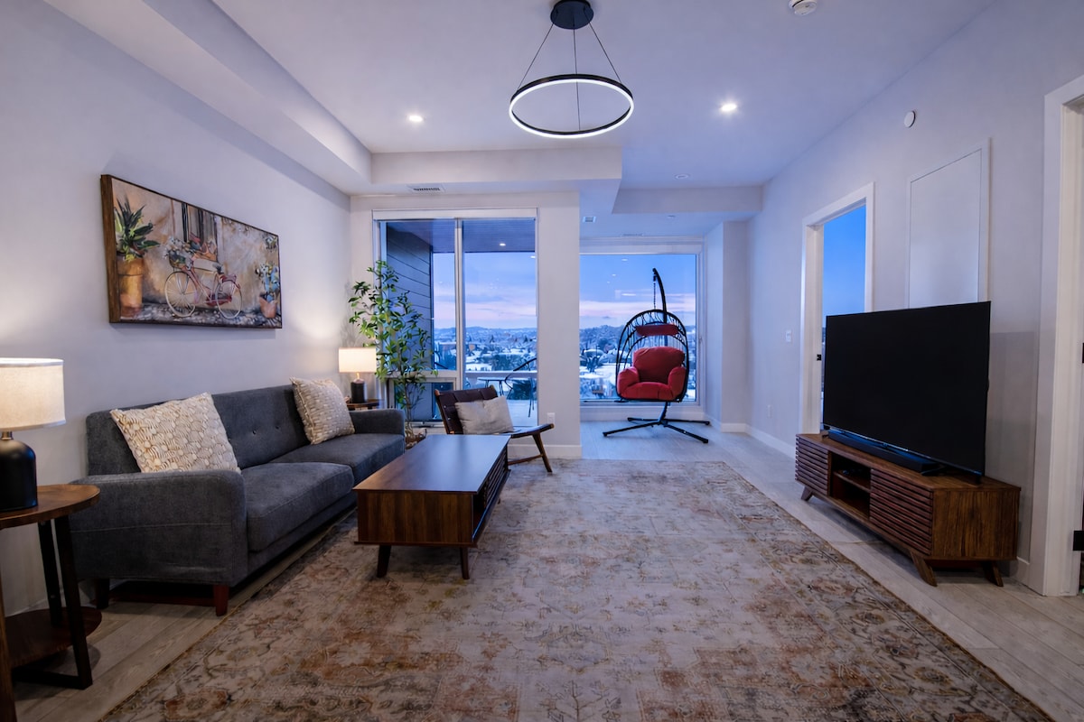 Bienvenue dans notre appartement lumineux et spacieux de 2 chambres et 2 salles de bain dans le quartier Beltline de Calgary. Parfait pour les familles ou les petits groupes, notre espace moderne dispose de chambres confortables avec une literie somptueuse, une cuisine entièrement équipée et un salon spacieux avec de belles vues sur la ville. Profitez de la commodité d'une buanderie attenante, d'une connexion Wi-Fi haut débit, d'un barbecue au gaz naturel et d'un stationnement intérieur gratuit. Avec des cafés, des restaurants et des attractions branchés à quelques pas, notre appartement est le point de départ idéal pour explorer Calgary.