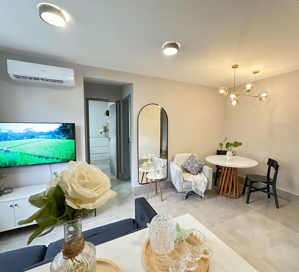 Un appartement neuf, moderne et haut de gamme avec des finitions haut de gamme et un design élégant, offrant un confort absolu dans les moindres détails. 📍Jardim Pinheiros, accès facile à Gleba, centre-ville, UEL et Shopping Catuaí • 13e étage • 2 chambres (1 suite) avec climatisation et ensemble complet de draps • Salon/salle à manger avec télévision connectée 55"et climatisation • Cuisine entièrement équipée + lave-linge et sèche-linge • Piscine • Aire de jeux ; • Barbecue au charbon de bois dans l'appartement • Garage délimité et fermé • Réception ouverte 24h/24 et arrivée autonome