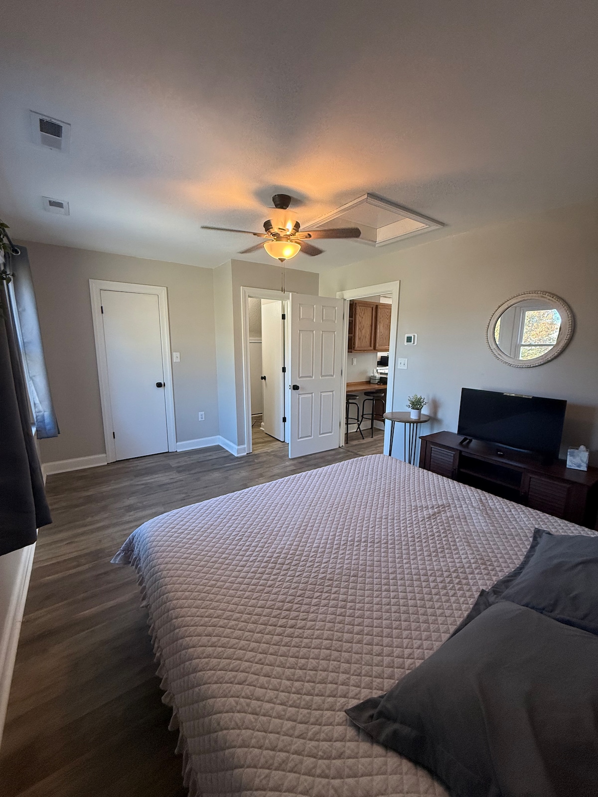 Il s'agit d'un Quiet Efficiency, parfait pour les professionnels, situé au-dessus de notre garage double. À quelques minutes de l'hôpital Sentara, de la base de la Garde côtière, des restaurants, des commerces et du front de mer. Parking privé hors rue, Wi-Fi, coin cuisine, espace bureau, lave-linge et sèche-linge, lit king size, fauteuil inclinable et siège d'amour. Un voyageur supplémentaire tel qu'un enfant peut être hébergé sans frais supplémentaires en utilisant notre matelas gonflable simple.