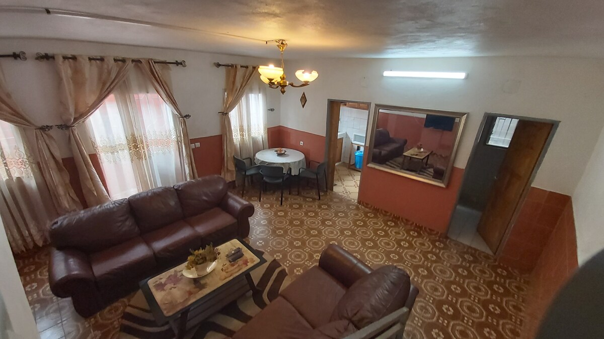 "Bienvenue au Logement Dahlia, votre oasis de confort à Yaoundé ! Situé à Nlongkak derrière l'immeuble "Campost ,cet espace moderne et élégant est idéal pour vos séjours professionnels ou touristiques. Profitez d’un salon , d’une chambre climatisée, d’une cuisine équipée, et d'une salle de bain . Très Proche du centre ville, des commerces et transports, le logement Dahlia offre tranquillité et praticité pour une expérience unique." Le logement se trouve au rez-de-chaussée d'un immeuble.