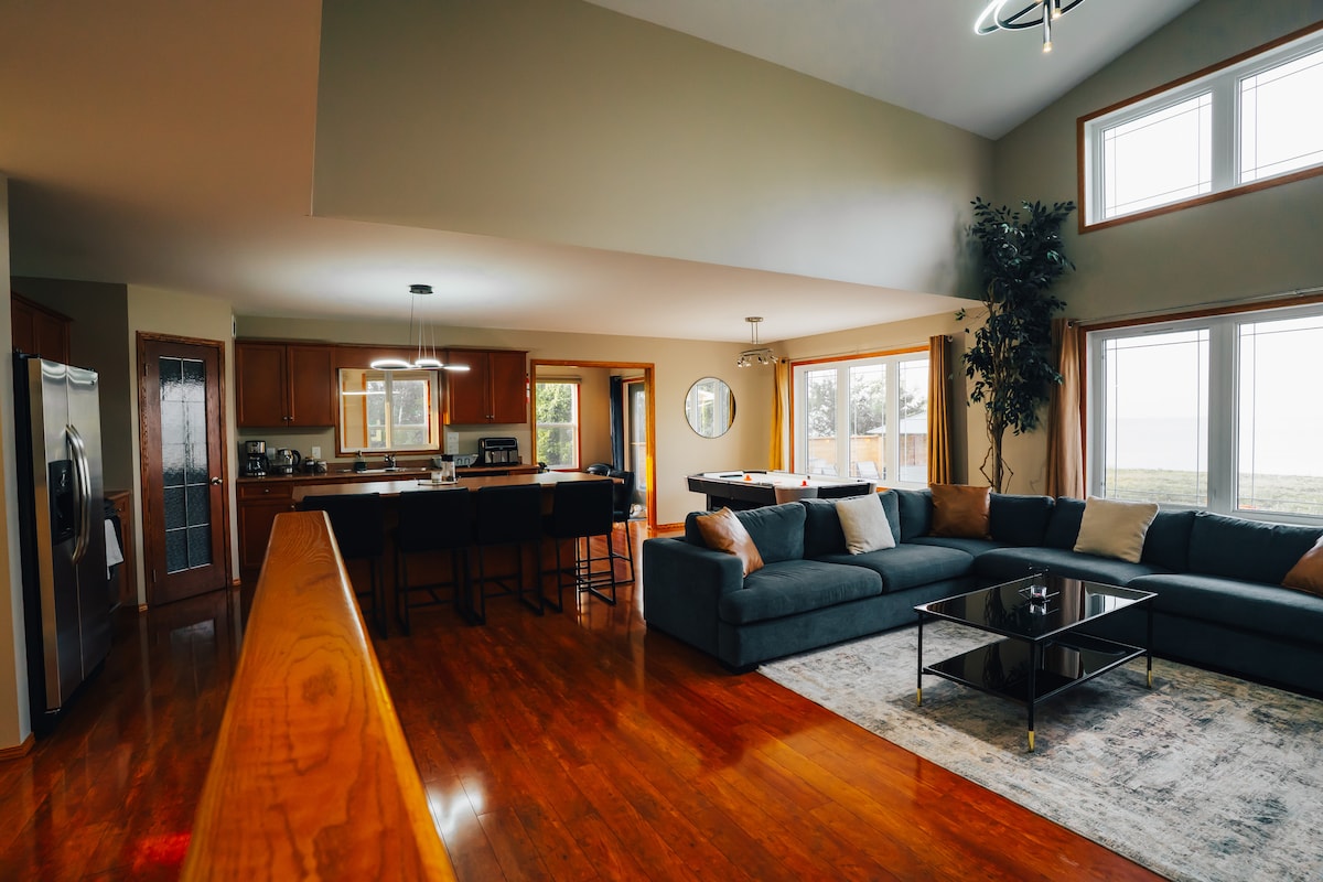 Our 3 bedroom cottage is just steps away from a quiet limited access beach. With immaculate views of Lake Winnipeg, our property has 3 outdoor decks to enjoy the views. In addition, enjoy the open concept living, dining and kitchen space. During the winter months, take advantage of the proximity to Lake Winnipeg for ice fishing. You and your crew are bound to unwind from life’s worries at our blissful paradise, minutes from the quaint town of Gimli.